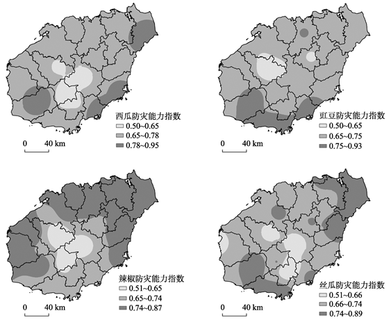 Fig. 5 The zoning of prevention capability for melon and vegetables in Hainan province图5 海南省瓜菜防灾能力指数 |