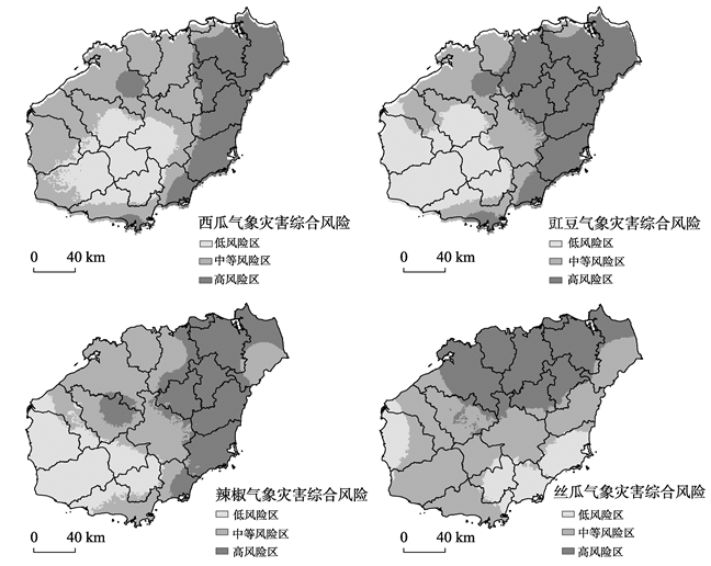 Fig. 6 The zoning of comprehensive damage risk for melon and vegetables in Hainan province图6 海南省瓜菜气象灾害综合风险区划 |