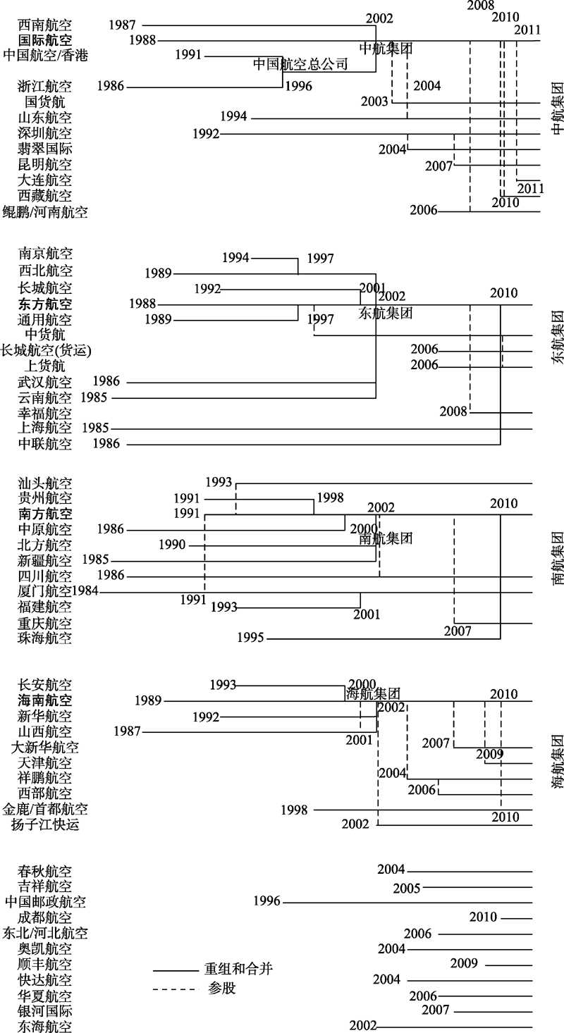 Fig. 1 Restructuring roadmap of China's airlines since 1980图1 1980年代以来中国航空公司重组路线图 |