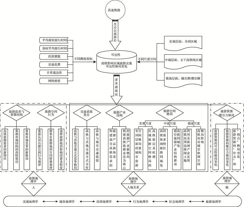 Fig. 5 Research framework of new topics of tourism geography in high-speed rail network era图5 高铁网络时代旅游地理学的新命题研究框架 |