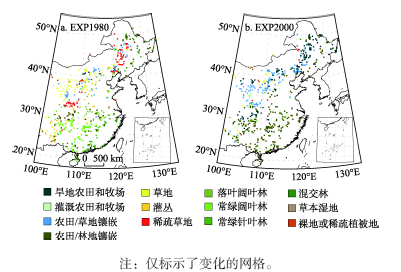 Fig. 2 Land use and land cover over the eastern China in 1980 and 2000 under the framework of WRF simulations图2 WRF模拟试验框架下1980年和2000年中国东部的土地利用/覆盖 |