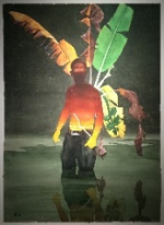 | 名称:XS26 内容:一个农民站在污水之中,身上长着几片芭蕉叶,但大部分都已枯萎 符号:农民、污水、芭蕉叶 作者:刘声 形式:纸面水彩 |