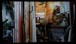 | 名称:艺术计划·夕阳为民理发点 内容:循环播放一段对店主梁伯的采访记录视频,展示该理发点的周边环境;现场还摆放着来自该理发点的部分器物 符号:城中村、窝棚 作者:喻旭东 形式:装置 |