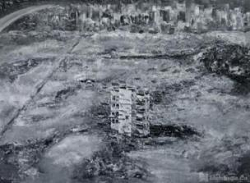 | 名称:当代景观之错误的覆加No.3 内容:废墟中仅剩下一栋摇摇欲坠的平房,就像是城市拆迁中的“钉子户”;色调为黑白 符号:钉子户 作者:莫希亮 形式:布面油画 |