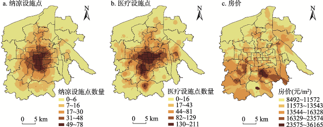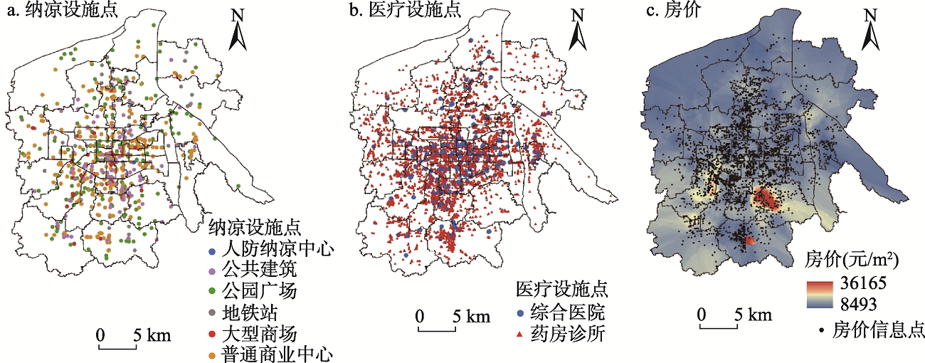 | 纳凉设施点数量(个) | 高德地图POI数据空间化(2018年) | ||