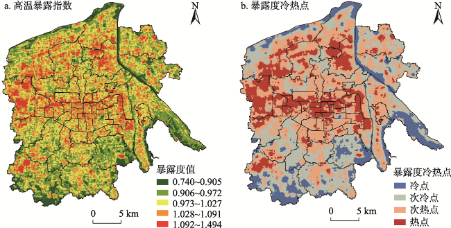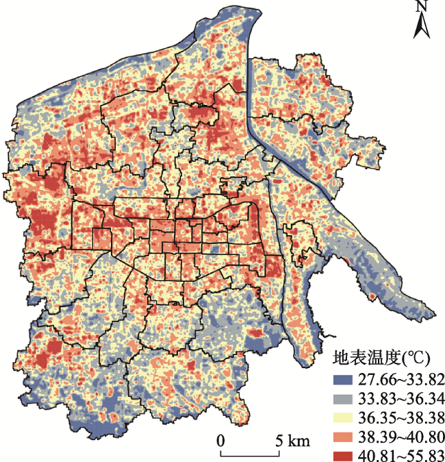 | 高温影响下城市人口脆弱性 | 高温暴露 | 地表温度(℃) | 基于Landsat8 OLI_TIRS遥感影像的地温反演(2019年) |
