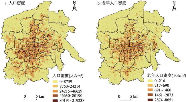 | 老年人口密度(人/km2) | 基于手机信令数据的老年人口密度计算(2018年) | ||