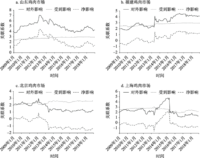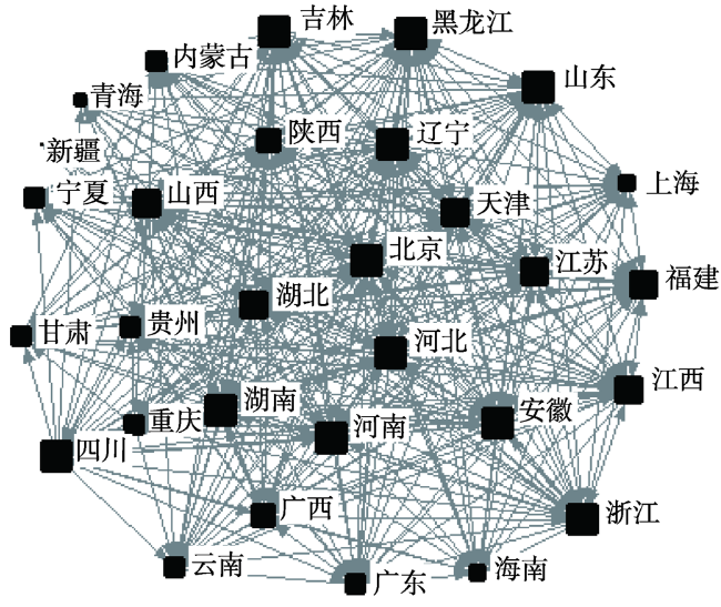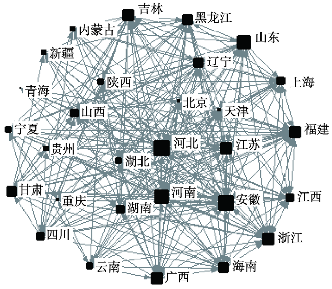 表3 畜禽产品市场空间关联的个体网络特征Tab. 3 Individual network characteristics of spatial correlation of livestock and poultry products market |