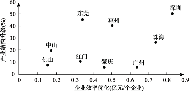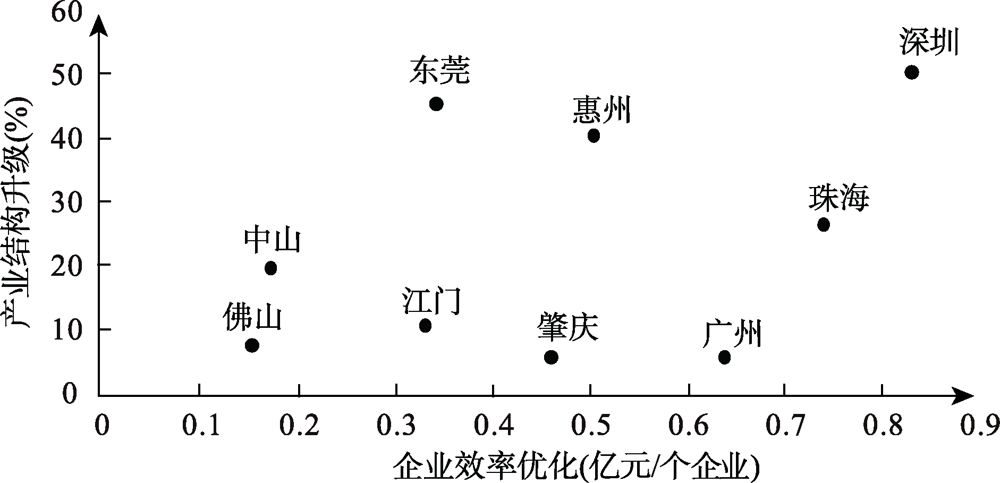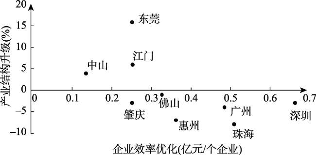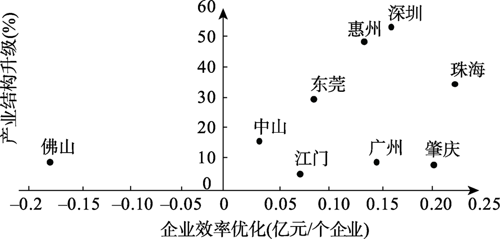 图3 1998—2008年珠三角产业升级测度结果Fig. 3 The industrial upgrading of the Pearl River Delta during 1998-2008 |