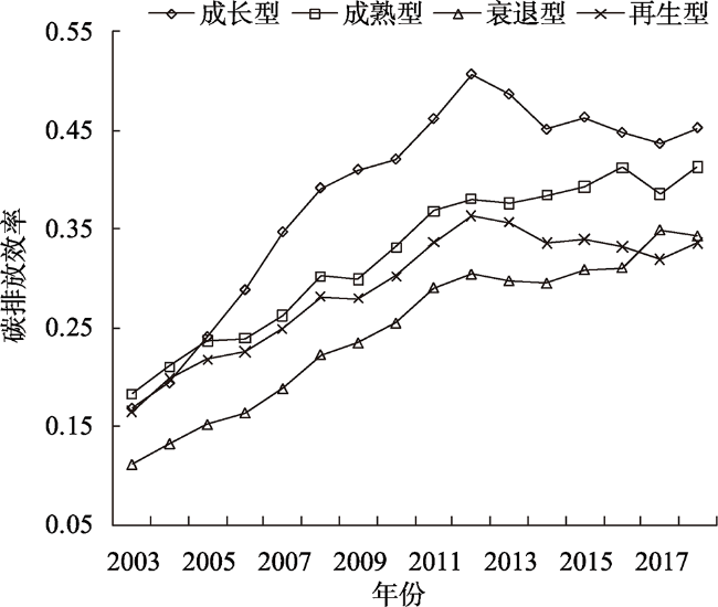表1 资源型城市碳排放效率泰尔指数区域地带分解Tab. 1 Decomposition of Theil index of carbon emission efficiency in resource-based cities |