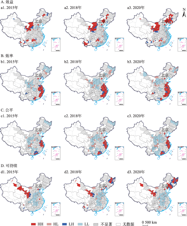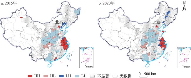 表3 2015—2020年中国城市住房公积金制度绩效的Moran's I、泰尔指数和贡献率Tab. 3 Moran's I, Theil indexes and contribution rate of the HPF performance from 2015 to 2020 |