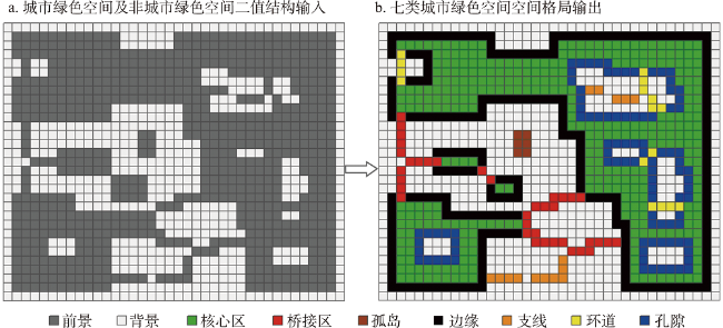 | 核心区 | 前景像素点远离背景像素点的距离大于指定大小 的某个参数的像素集合 | 大型自然斑块、野生动植物栖息地、森林保护区等 |