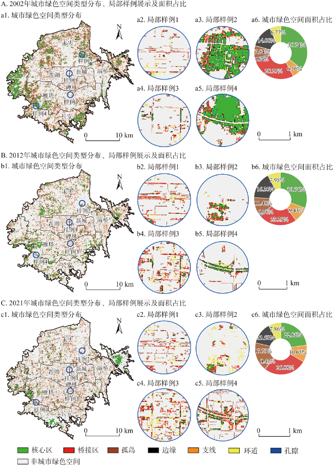 | 孔隙 | 核心区内部的孔洞周边 | 核心区内部建设用地的周边绿地 |
