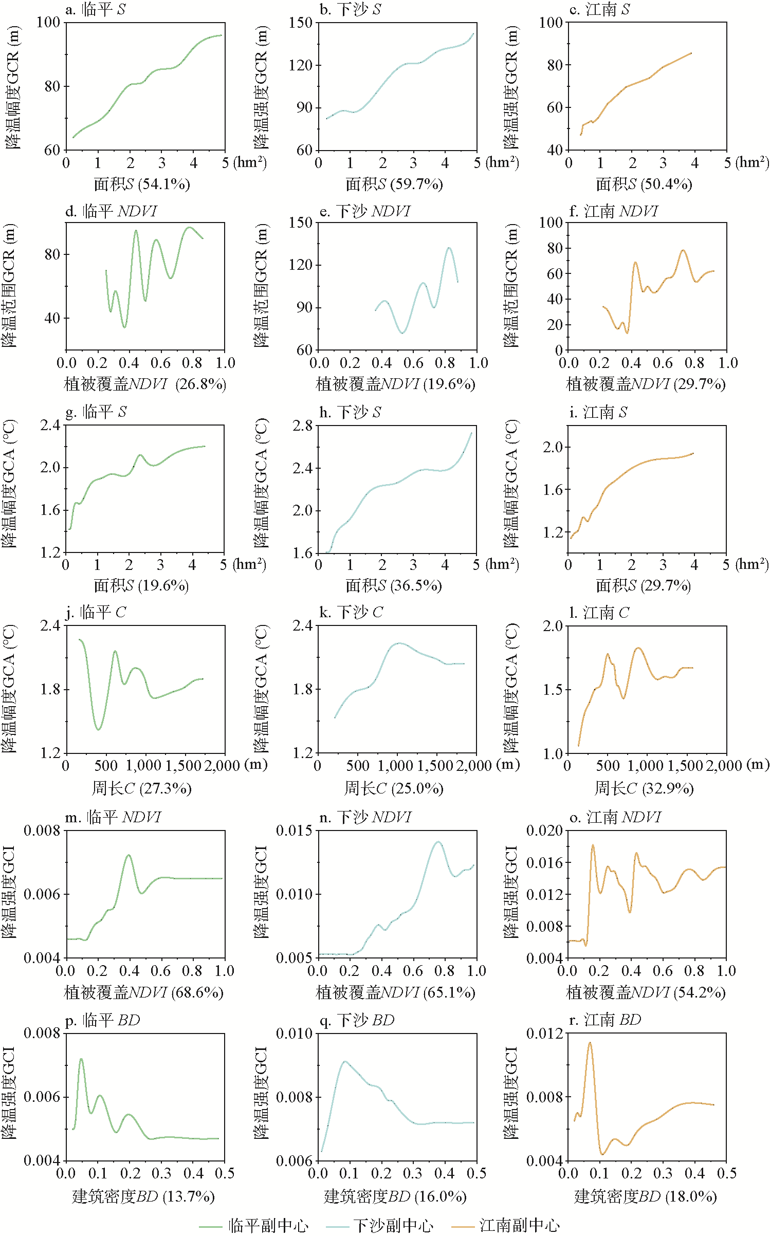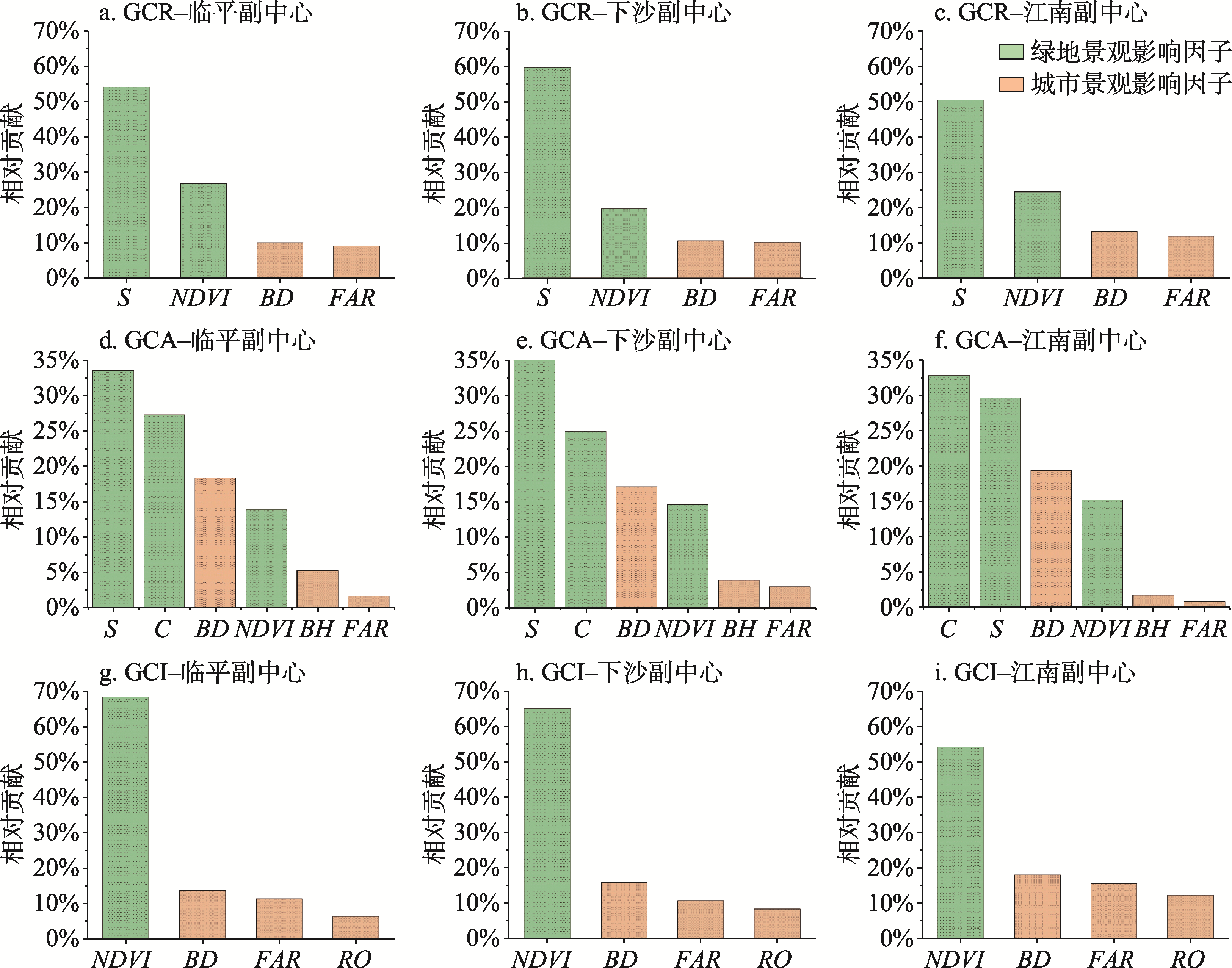 Relative contribution of each influencing factor to the cooling effect of greenspace in the sub-centers