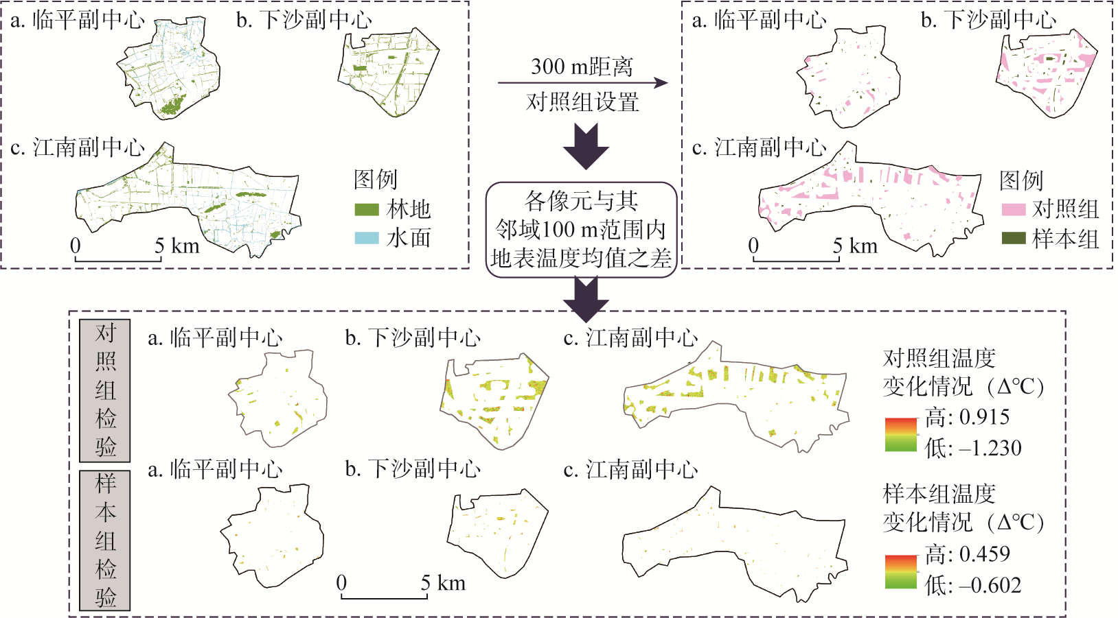Analysis of temperature variations between green space sample group and non-green space control group