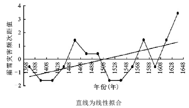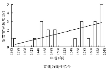 4) 据霜雪灾害发生频次和强度分析显示,关中平原明代公元1618~1631年发生一次寒冷气候事件。