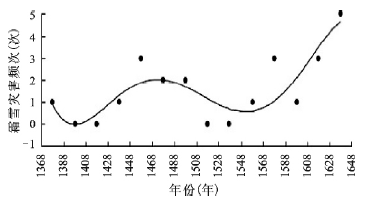 Fig. 4 Change of frost and snow disaster fitted by quintic polynomial of Guanzhong Plain in Ming Dynasty