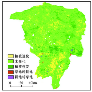 | 空间变化类型 | 未变化 | 植被退化 | 植被恢复 | 草地转耕地 | 耕地转草地 |
