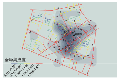 Fig. 5 The promotion of spatial structure about scenic spots and roads in Confucius Temple (kernel=120) |
