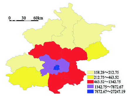 图3 北京市人口密度分布(人/km2 )