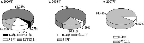 图8 老挝北部刀耕火种农业的轮歇周期及面积比例 |
