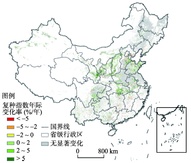 图8 1999-2013年中国耕地复种指数年际变化趋势的空间分布特征(P<0.1) |