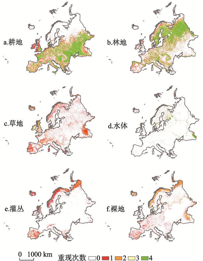 图4 欧洲主要土地覆被类型的空间一致性