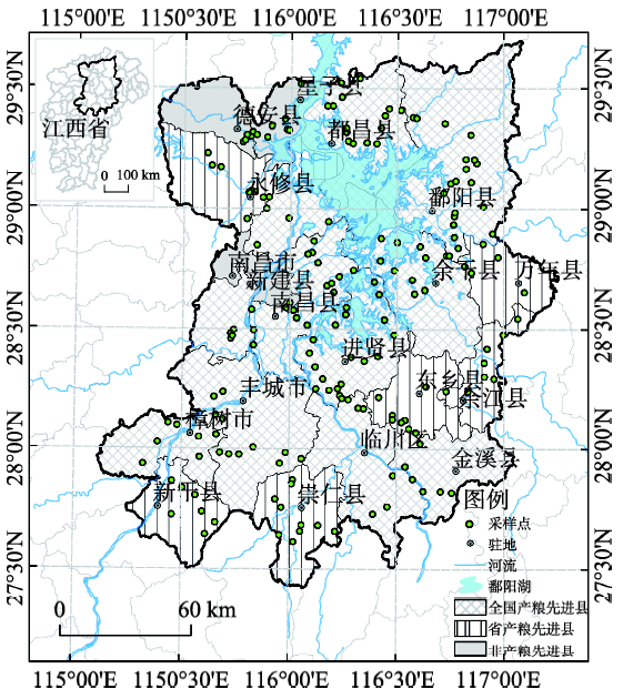 图1 鄱阳湖平原粮食主产区示意图及采样点