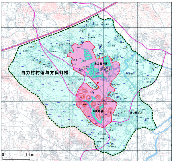 开平地处五邑中部,总面积约1659 km2,人口约68万。而旅居海外华侨及香港、澳门、台胞,却有75万人,分布在世界67个国家和地区,其中港澳台同胞约26万多人。全市归侨、侨眷和港澳同胞家属约占在家人口的八成。开平现存碉楼1833座,目前对外公开的碉楼景点有自力村、三门里村、马降龙村、锦江里村、加拿大村、适庐、南楼纪念公园、立园等。其中,正式营业的碉楼景区4处,包括立园、自力村、马降龙与锦江里。本文核心区域自力村位于开平市塘口镇,隶属于塘口镇强亚村委会,是碉楼群落保存最完整的村落,也是首个对外开放的且游客量最大的景区。2010年自力村游客13万人次,而马降龙村为5万人次,锦江里仅为6305人次。据村委会统计数据,全村共有51户,常住人口120人。旅游发展后,村民以多种方式参与其中,但主要将其作为生计补充。主要区域古宅地区是方氏家族聚居地,基本被划入“强亚”、“宅群”两大行政村,且落在自力村核心区与缓冲区内(图2),其中强亚管区位于塘口镇中部,总住户557户,人口1785人,下辖9条自然村;宅群管区人口1400多人,下辖7条自然村。比较区域马降龙地处百合镇,居住着关、黄两姓族人,辖管10个自然村。马降龙村的最大特点是民居与自然环境的融合,被称为“世界上最美丽的村落”;锦江里地处蚬冈镇,由黄姓家族建成,村落规模较自力村更小,仅有三十余户人家。村内有三座碉楼,包括现存最高、最美,有“开平第一楼”之称的瑞石楼;三门里位于赤坎镇,尚有人口百人左右,拥有开平现存最古老的碉楼——建于明朝嘉靖年间的迎龙楼;仓东村不属于景区,位于塘口镇立园旁,由谢氏族人建造,至今已有700年历史,村内保有夫人庙、忠心社、祠堂、学校等建筑。目前人口仅50余人,建筑破败,曾出现严重的水浸情况。2011年开平碉楼景区游客量为42万人,而到2013年增长到近80万人。在遗产旅游的助推下,开平碉楼走向了旅游发展的快车道。碉楼由昔日的辉煌到其后的破败再到今天的复兴,正是遗产运动使得碉楼重回众人的视野。