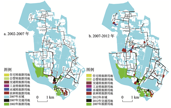图5 2002-2012年周庄旅游用地空间变化图 |