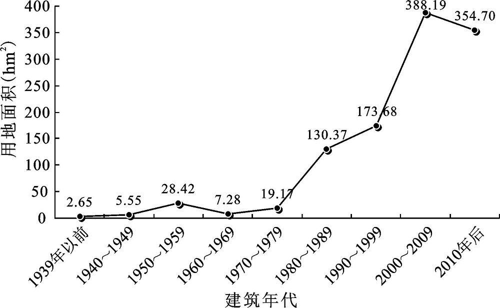 | Fig.4 Area of the land-use for architectures with different built-years |