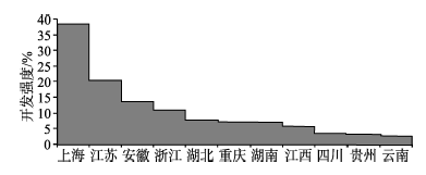 图6 长江经济带各省市现状开发强度(根据9省2市主体功能区规划报告整理)