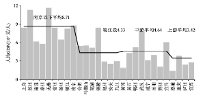 Fig.3 GDP per capita of cities and prefectures along the Yangtze River in 2012