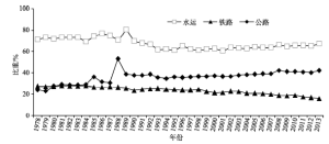 图4 1978年以来长江经济带主要运输方式货运量占全国比重的变化