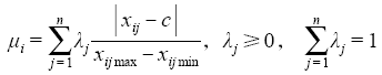式中:μi表示第i个子系统的协同度;xij是绿洲城镇化系统的第i个子系统的第j个序参量;αij,βij为临界阈值,αij≤xij≤βij;λj为序参量xij的权重;xijmax,xijmin分别为序参量xij的最大和最小临界阈值;c的取值根据序参量xij与系统协同度的一致性,分别取最大值、最小值或常数。