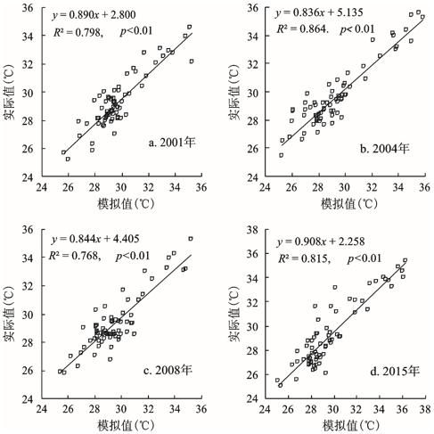 图1 地表温度实际值与模拟值拟合