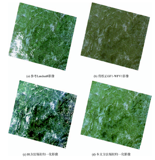 | 图4 原始影像和不同方法的辐射归一化结果(RGB组合) |