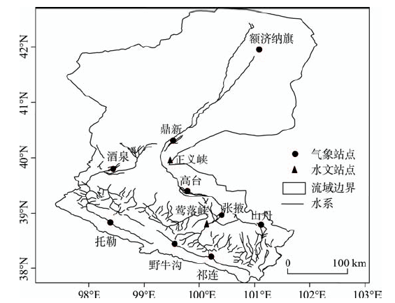 | Fig. 1 Locations of meteorological stations in the Heihe River Basin |
