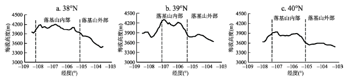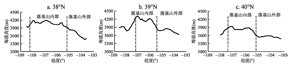在山体效应的定量化研究中,加入山体效应的林线高度分布模型具有较高的拟合精度,比传统的经纬度模型对林线分布高度具有更强的解释能力[10]。可见山体效应对山地垂直带分布具有重要影响。已有青藏高原的相关研究表明,由于山体增温作用的影响,高原内部气温和生长季长度高于周围地区,因此其内部林线比外围地区高500~1000 m[25]。本文以林线的度量指标最热月10 ℃等温线为基础[2,25,26],研究科罗拉多落基山脉不同纬度(38°N、39°N、40°N)山体效应对林线分布的影响。