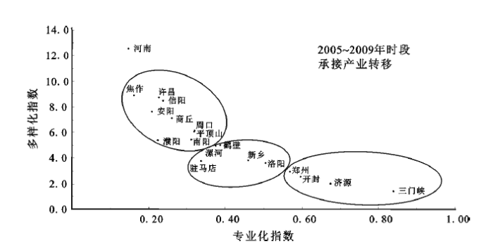 Fig.2 The situation of cities in Henan undertaking manufacturing industry transfer