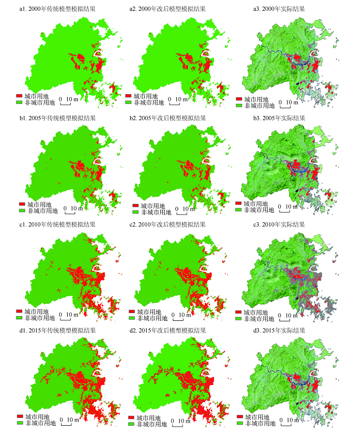 Tab.2 Urban land expansion test results based on the traditional and modified CA-ABM models