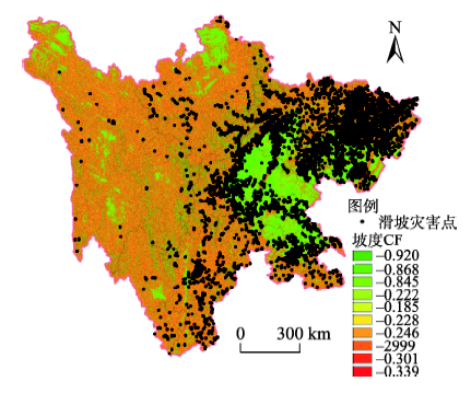 Fig. 1 Relationship between slope CF and distribution of landslide hazard points