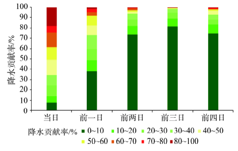 图10 滑坡灾害发生当日及前四日降水对累积降水量的贡献