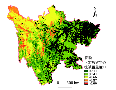 Fig. 3 Relationship between vegetation coverage CF and distribution of landslide hazard points