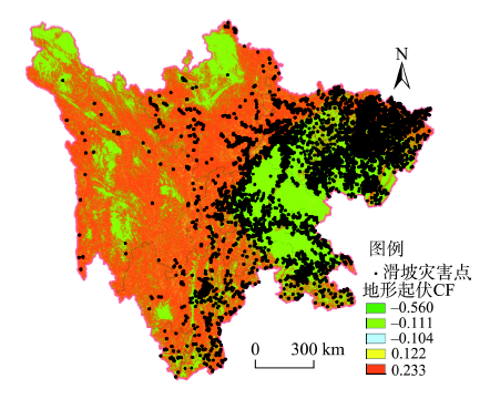 Fig. 4 Relationship between relief amplitude CF and distribution of landslide hazard points