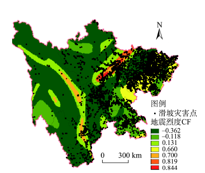 图6 地震烈度CF与滑坡灾害点分布的关系