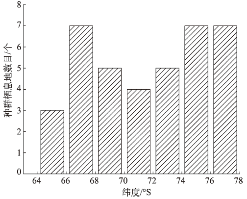 图5 2009年南极帝企鹅种群纬度位置的分布