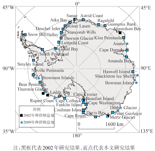 表1 2009年南极主要帝企鹅种群栖息地