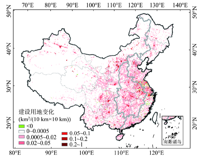 进入21世纪以来,随着社会经济持续快速发展,国家进入了快速城市化和工业化阶段,由此迈入战略转型关键时期。为有效保护和开发国土资源,优化开发结构,加强国土空间格局管控和生态保护,“十二五”期间,国家实施了一系列国土空间管控策略。2010年,国务院发布了“全国主体功能区规划”,规划将国土空间按开发方式分为优化开发区域、重点开发区域、限制开发区域和禁止开发区域4类主体功能区,各区将依据各类主体功能区定位选择合理的开发和保护方式[13]。期间实施的生态文明建设规划,突出国家重点生态功能区、生物多样性保护优先区、自然保护区等重要生态空间的保护和管理。国家实施的一系列重大战略决策等因素,会对土地利用变化产生深刻的影响。遥感卫星影像由于具备长时间监测能力、较高空间分辨率等特点,已成为土地利用变化监测的重要数据源之一[14]。因此,基于遥感卫星影像数据,开展国家尺度长时间序列高精度的土地利用变化监测,获取国家尺度土地利用的时空格局和变化特征,对于科学有效制定未来国家国土空间管控策略以及实施可持续发展目标具有重要的战略意义[15,16,17]。