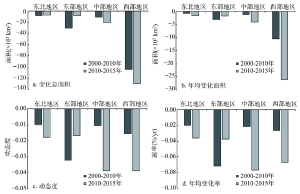 Fig. 8 Statistical histogram of woodland and grassland change by region in China during 2000-2010 and 2010-2015